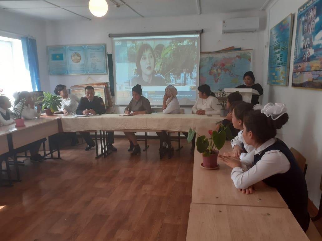 10.10.2019ж күні "Қыз Жібек"қыз балалар ұйымының ұйымдастыруымен "Қыз бала ұлттың ұяты,халықтың шырайы" атты " ауыл медбикесі және мектеп инспекторымен ұйымдастырылған кездесу өтті.