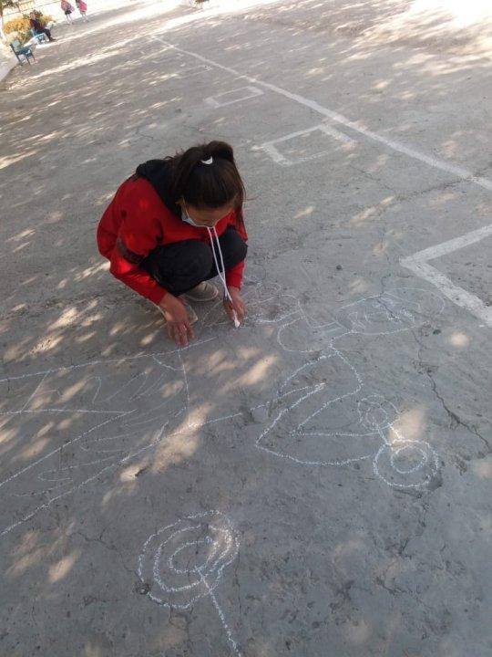Байқау барысы оқушылардың бойына көтеріңкі көңіл күй сыйлау ,сулулықты,шеберлікті,өнерге баулу мақсатында өтілді. Мектеп ауласындағы жер бетіне салынған сурет оқушыларға қызықты әрі көңілді өтті.Салған суреттеріне өздері баға беріп,қылқалам шеберліктері шыңдалды.