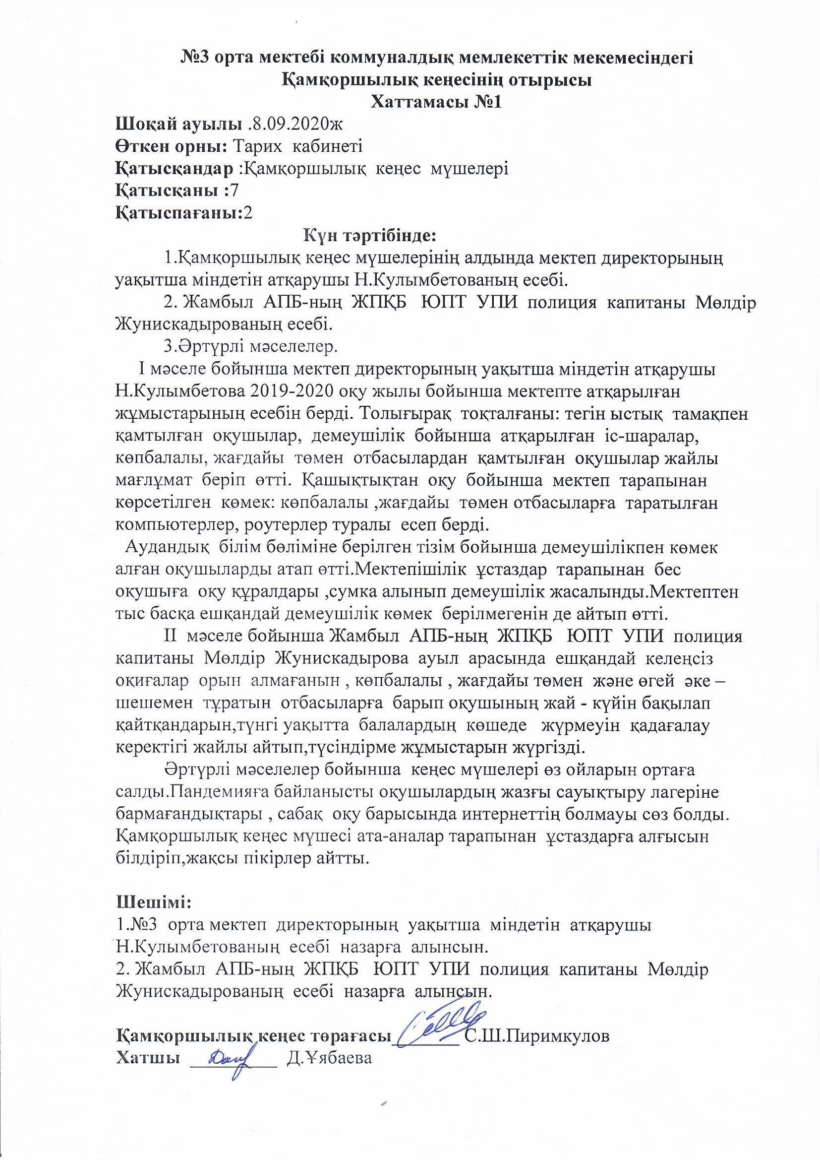 10 сентябрь 2020 0 1 2 3 4 5 №3 орта мектебі коммуналдық мемлекеттік мекемесіндегі Қамқоршылық кеңесінің отырысы