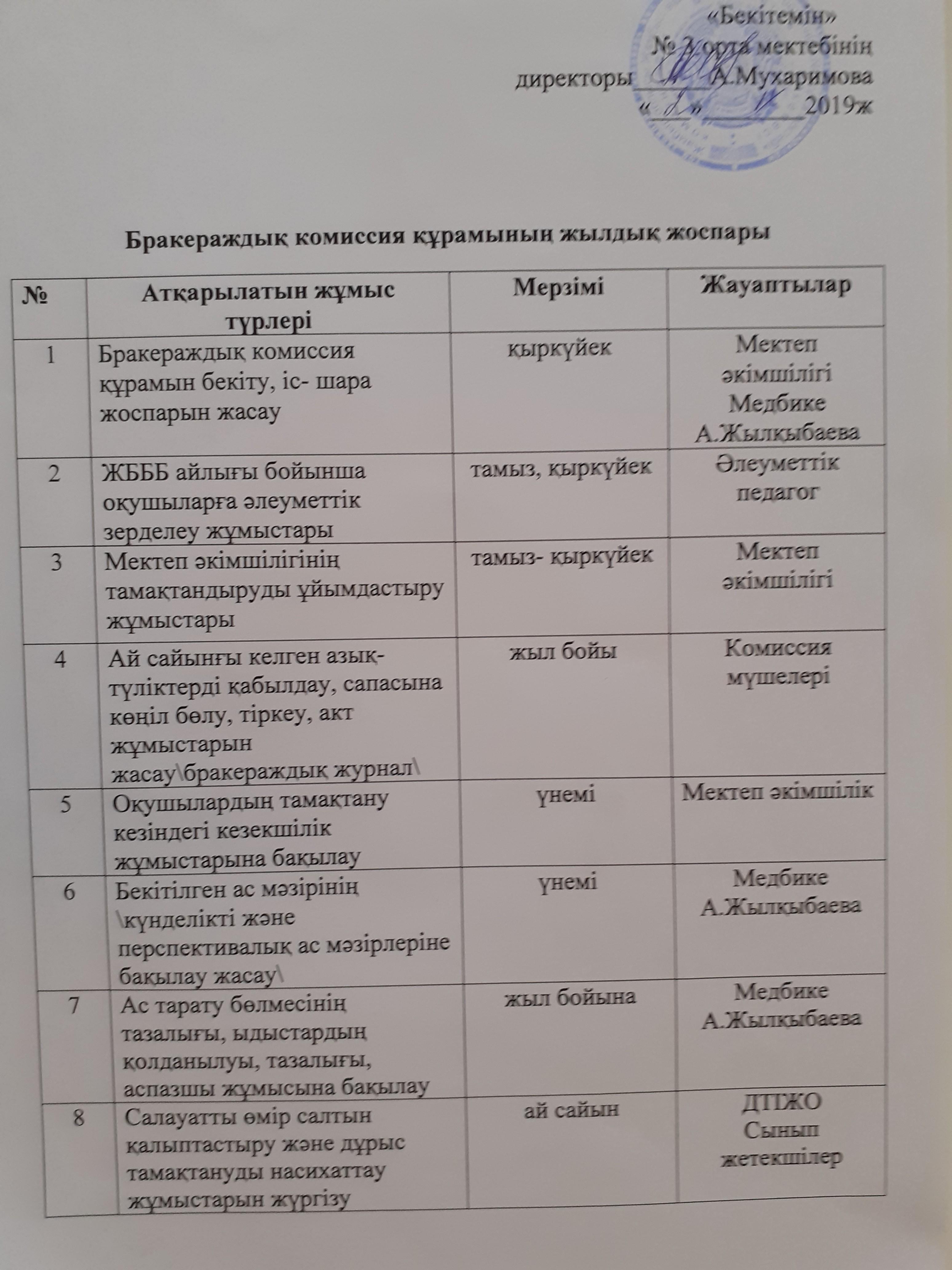 Бракераждық комиссия құрамының жылдық жоспары » Сш им Октябрь-Жемис