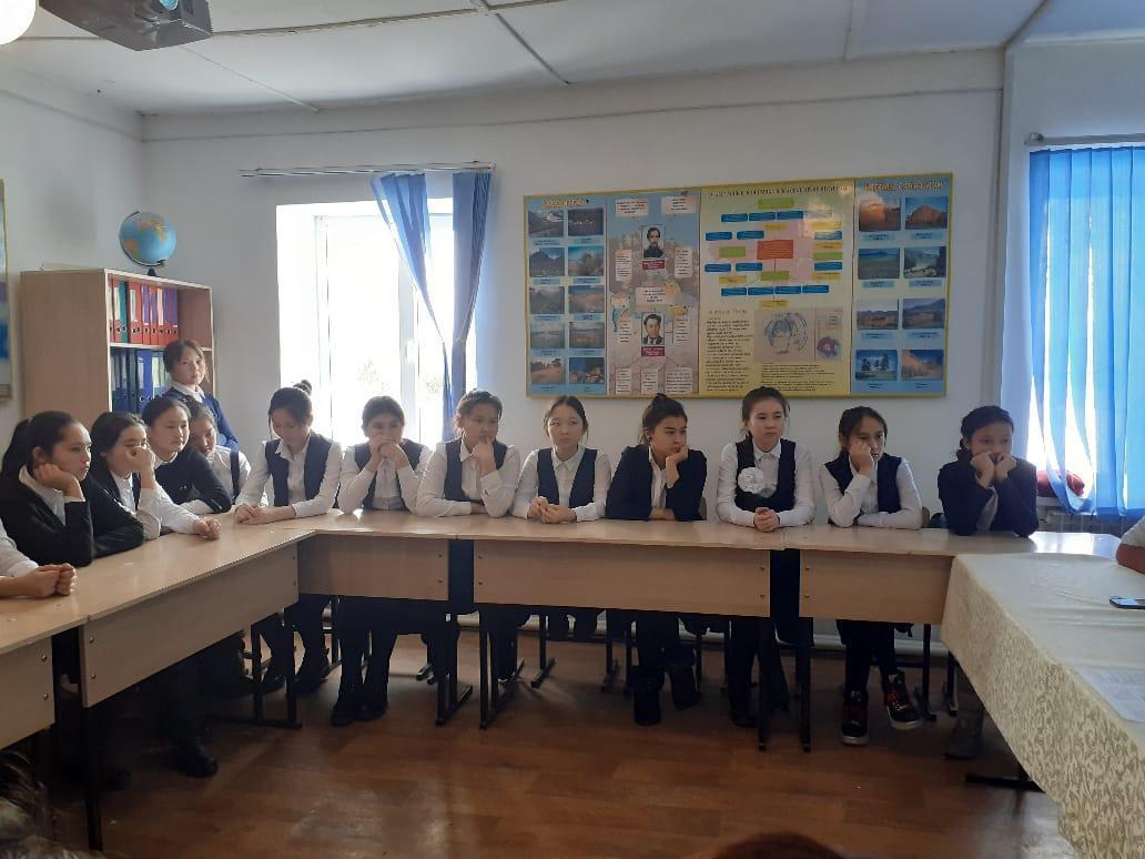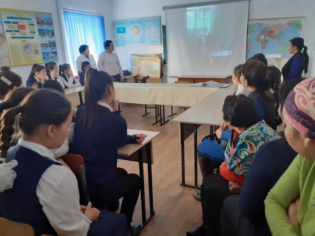 15.11-16.11.2019ж. күндері аралығында 1-11 сыныптар аралығында "Дұрыс тамақтану-денсаулық кепілі", "Ас - адамның арқауы" тақырыптарында сынып сағаттары өтілді. Апталық барысында оқушылар дұрыс тамақтану ережесі мен астың адам ағзасына пайдасы туралы ақпараттар алып, бейнероликтер көрсетілді.
