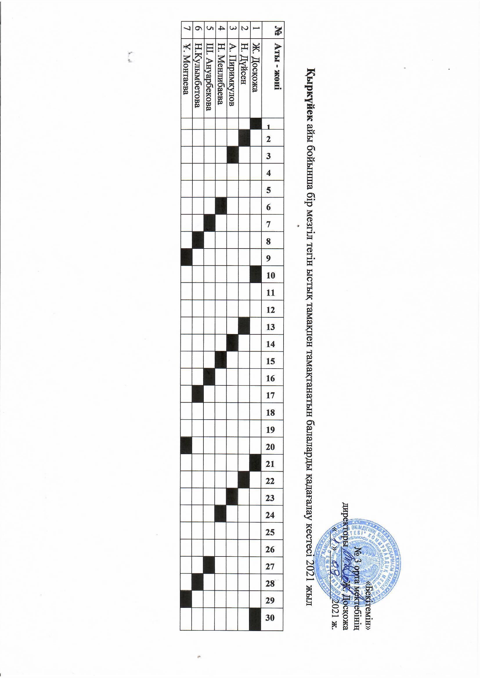 Қыркүйек айына кезекшілік кестесі » Сш им Октябрь-Жемис