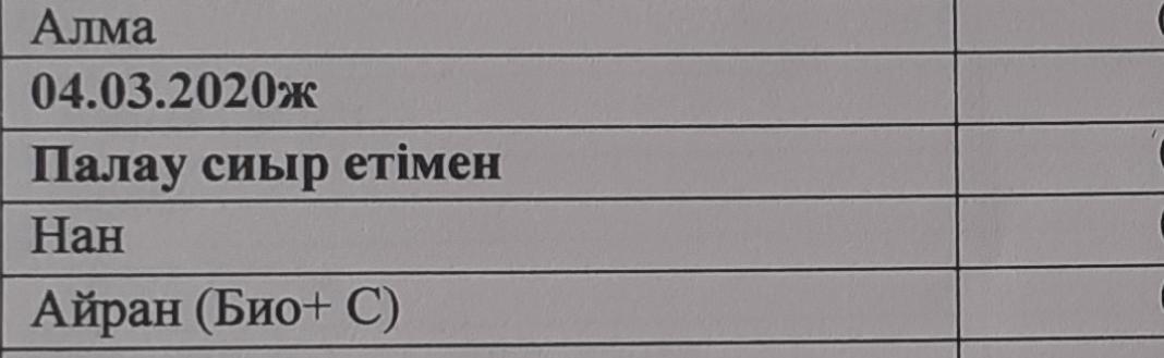 » » » 1 сынып оқушыларының 1 күндік ас мәзірі